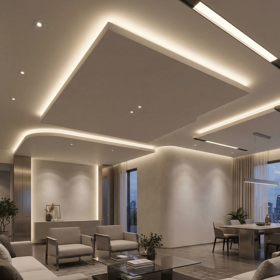 Мы делаем освещение частью декора. Создаем теплую и престижную атмосферу с помощью современных LED-профилей и скрытой подсветки.